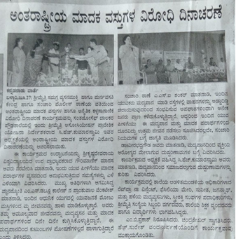 Sri Maitri IRCA Bellary has organized a function to fight against drugs and illicit trafficking on the occasion of the observation for the INTERNATIONAL DAY AGAINST DRUG ABUSE AND ILLICIT TRAFFICKING on 26th June 2019 at ST. Joseph’s Boys School, Belagal Raod BALLARI, The Function was attended by D.D.W Sri,K.Mahanthesh K, C H Kumaraswamy R.P.D. Sri Maitri Association ® Davanagere, Dr. Sri Verabhadra Gouda Chief Medical Officer, Sri Maitri IRCA Bellary, Sri Rev Fr NA, Vincent Manager Correspondent ST. Joseph’s Boys School, Ballari. Sri Shankar Inspector, Traffic Station Ballari. Dr Gouri Manik Manasa Associate Professor Dept. of Social Work VSK University Ballari. Sri Venkatesh Principal, JJ MSW College Ballari, Sri Jaganath Yoga Teacher And Social Worker Balari , Members of SHG’s, Press reporters, Recovered patients, indoor patients, and also overall audience of around nearly 480- 500 people attended the programme.