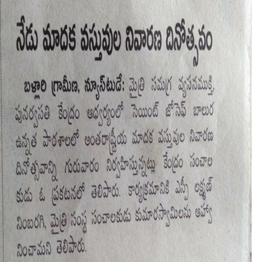 Sri Maitri Rehabilitation centre for Addicts Ballari has been organizing different type of training programmes. Mainly training the social work students ‘to create awareness and bring to mainstream those groups that are at risk from alcohol and drug abuse’. Further awareness created among the people also created.
